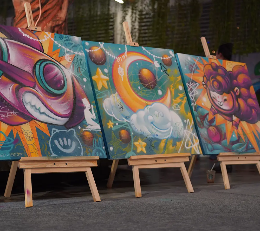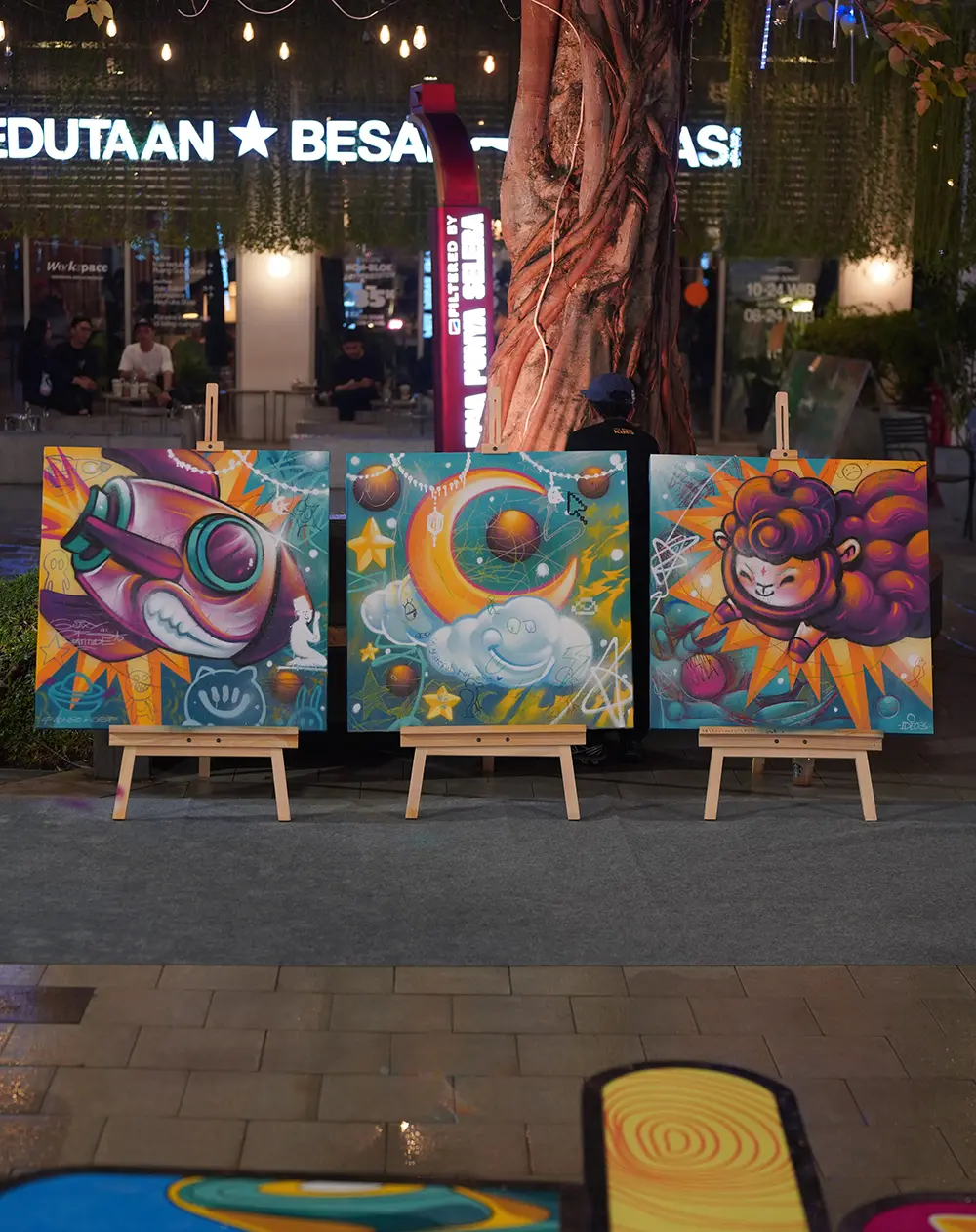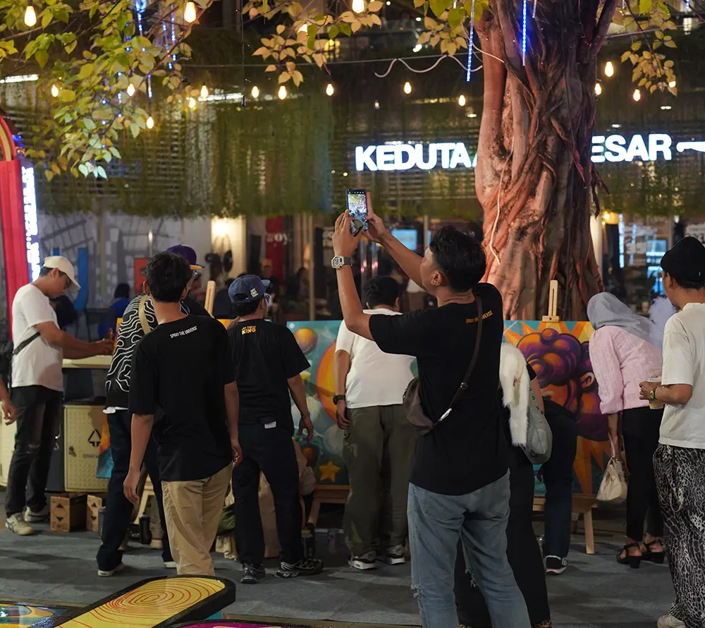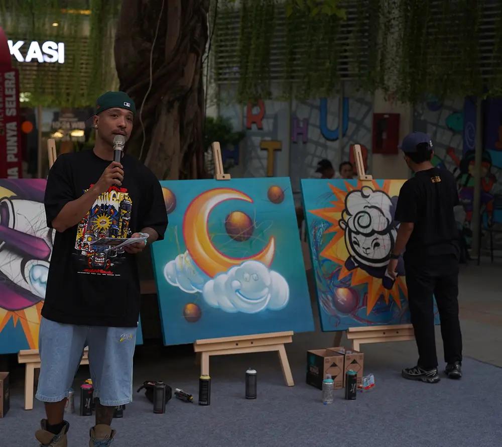 Running from 1 March to 13 April 2025, the installation invites visitors to slow down, reflect, and express thankfulness through interactive art. Pinokibo's bold visual style merges cosmic imagery with Ramadan symbolism, creating a unique blend of tradition and modern storytelling.